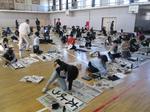 1月9日(金)は5,6年生、13日(火)は3,4年生が体育館で書初め会を実施しました。今年度は多くの外部指導者に来校いただき、ご指導いただきました。子供たちも集中して取り組み、力強い作品が仕上がりました。